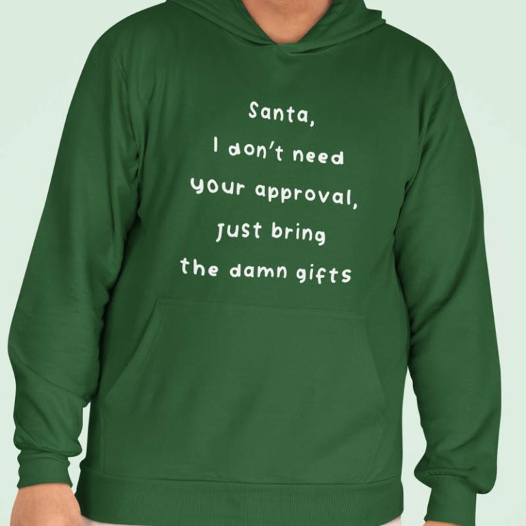 Foute Kerst Hoodie Groen Santa, I Don't Need Your Approval Just Bring The Damn Gifts