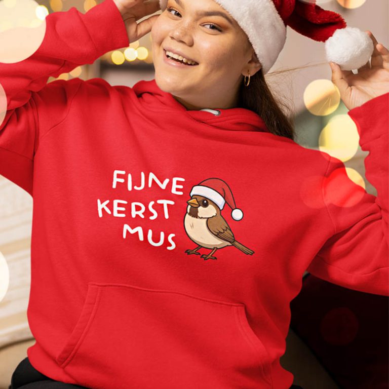 Foute Kerst Hoodie Rood Fijne Kerst Mus