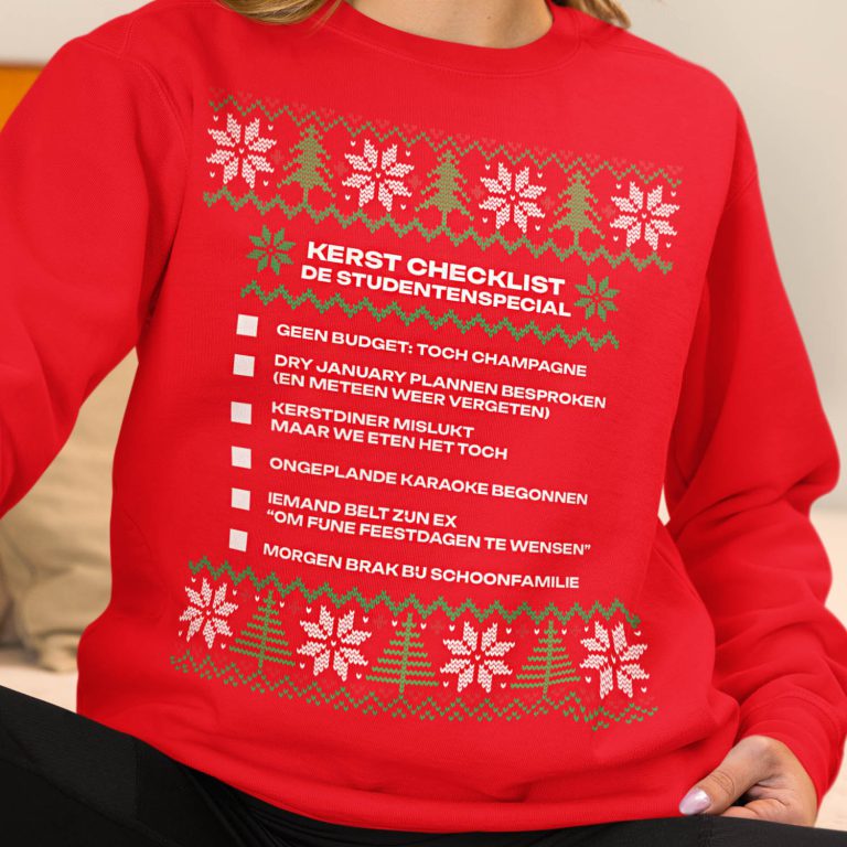 Kerst Trui Rood Kerst Checklist - De Studentenspecial