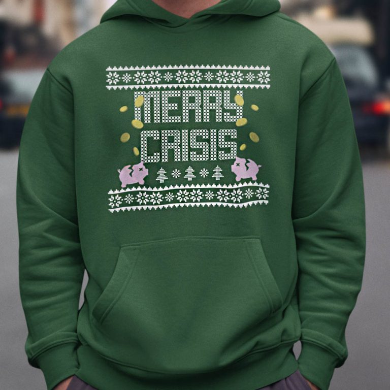 Foute Kerst Hoodie Groen Merry Crisis Piggybank