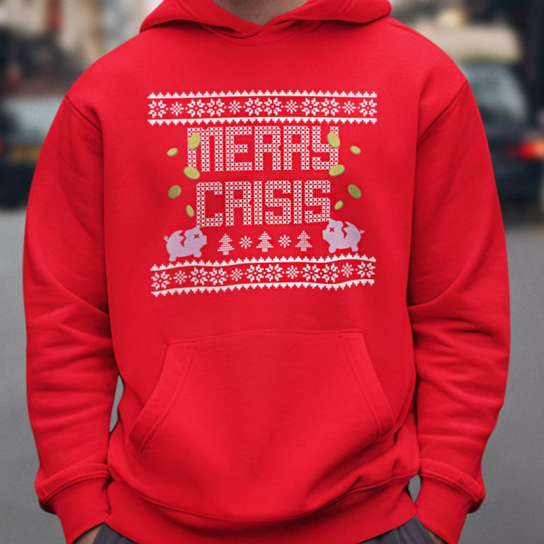 Foute Kerst Hoodie Rood Merry Crisis Piggybank