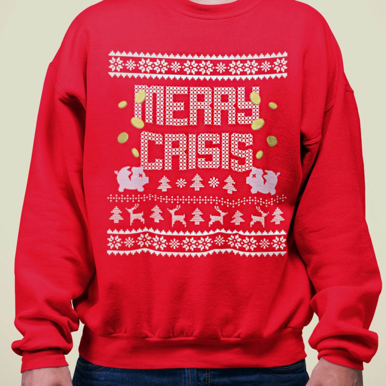 Foute Kerst Trui Zwart Merry Crisis Piggybank