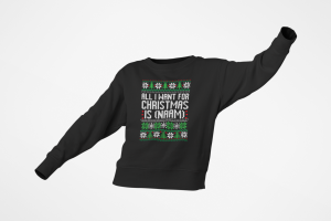 • Foute Kersttrui Zwart All I Want For Christmas Naam