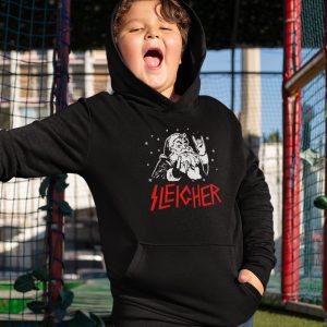 Heb jij ook zo'n stoere zoon of dochter die wel van metal muziek houdt? Of ben je zelf een groot metalfan? Dan is dit de juiste hoodie voor jouw kind. Een mooie kwaliteit sweater met hoodie met een gave print van Sleigher Santa. Verkrijgbaar in de kleur zwart in de maten 3 t/m 14 jaar. Ook voor volwassenen hebben wij uiteraard deze gave Sleigher hoodie.