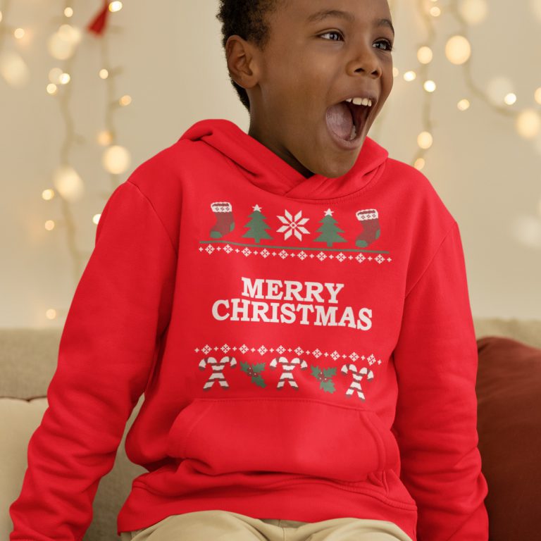 Kerst Hoodie Kind Rood Candy Cane Merry Christmas