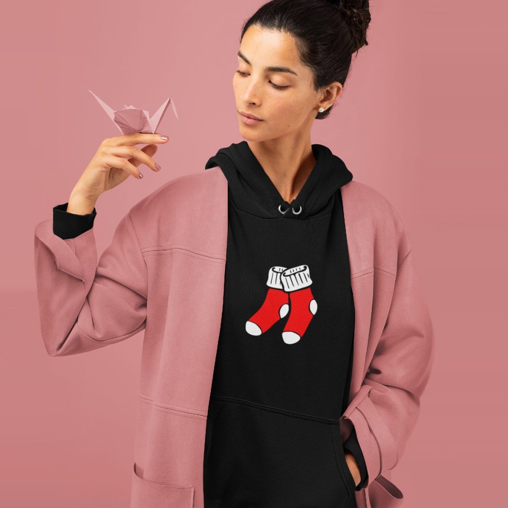 Steek jij de minimale moeite in een foute kersttrui? Bestel dan deze zwarte kerst hoodie met een paar kerstsokken in cartooneske stijl! Het is een comfortabele, uniseks hoodie sweater die geschikt is voor zowel dames als heren. Dit unieke design is alleen te verkrijgen bij 1001Caps, leverbaar in de maten XS t/m 5XL.