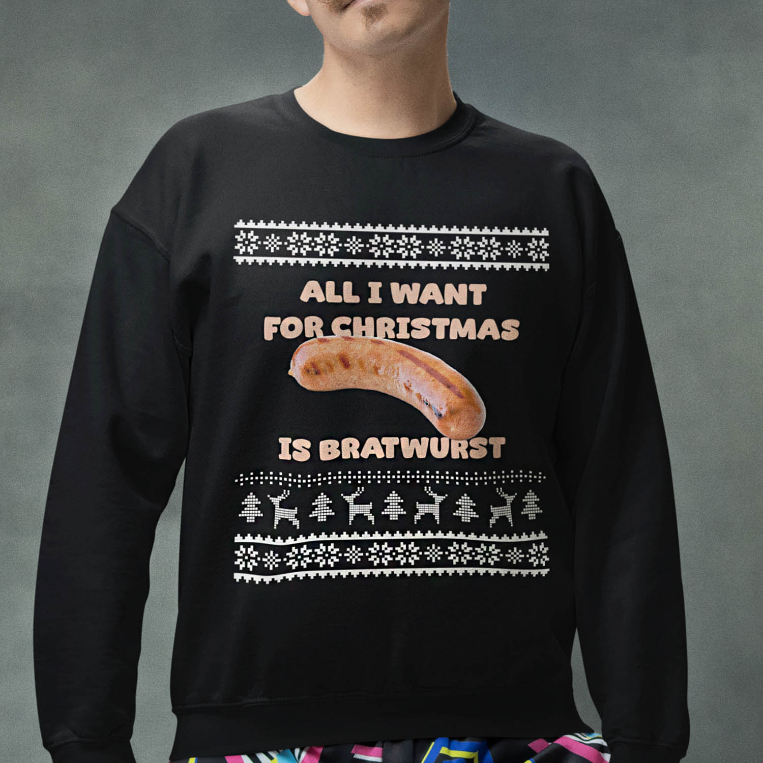• Foute Kerst Trui Zwart All I Want For Christmas Is Bratwurst