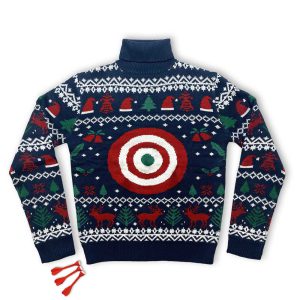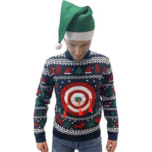 Met deze interactieve kersttrui met colkraag ben je verzekerd van een goede binnenkomer tijdens het kerstdiner of kerstborrel. Speel darts met je familie of vrienden met deze foute kersttrui. Inclusief 3 dartpijlen met klittenband die blijven plakken op je kersttrui.
