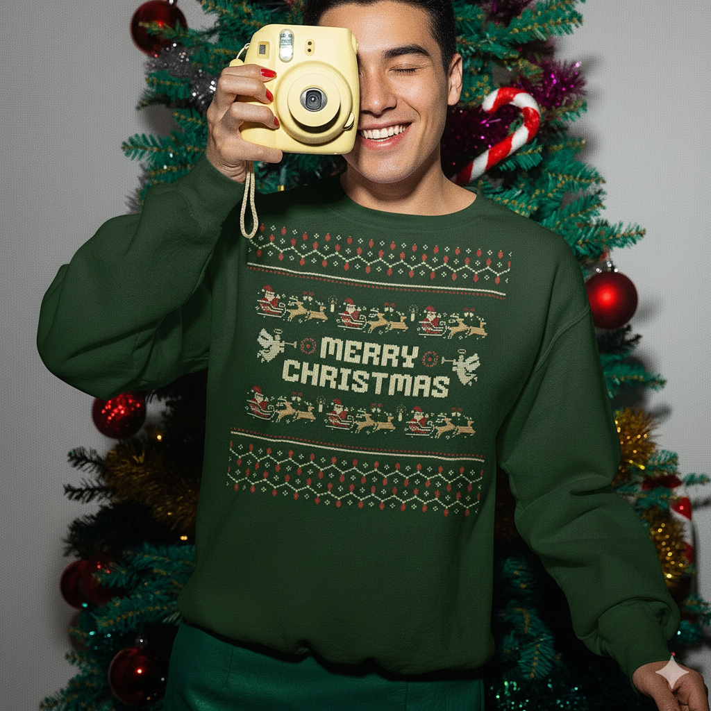 • Foute Kersttrui Groen Merry Christmas Oldschool