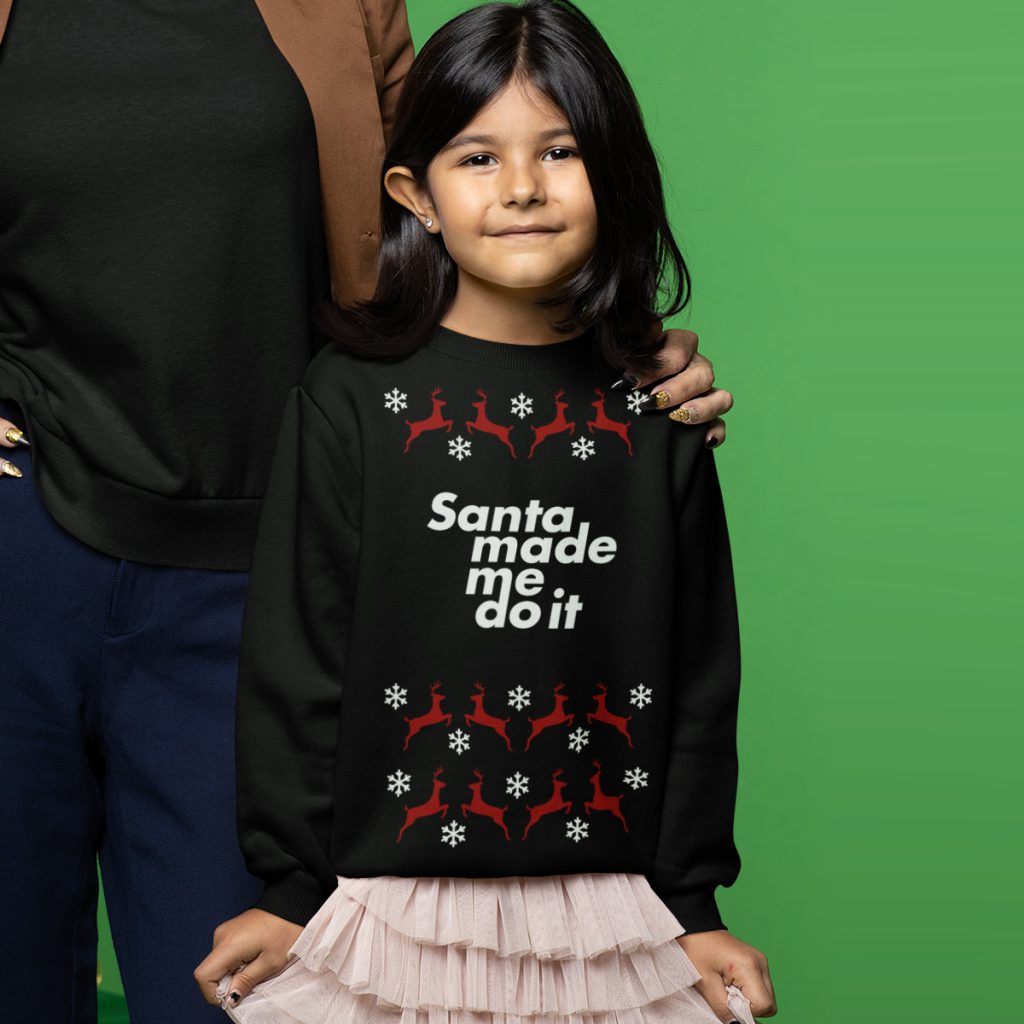 Foute Kersttrui Kind Zwart Santa Made Me Do It Rendier