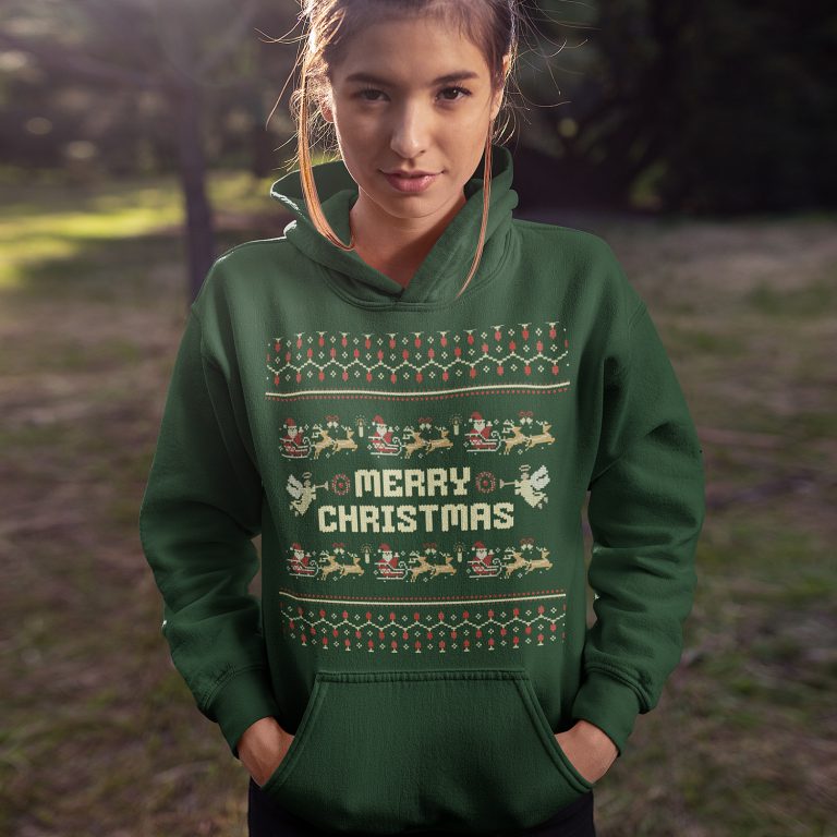 Foute Kerst Hoodie Groen Merry Christmas Old School