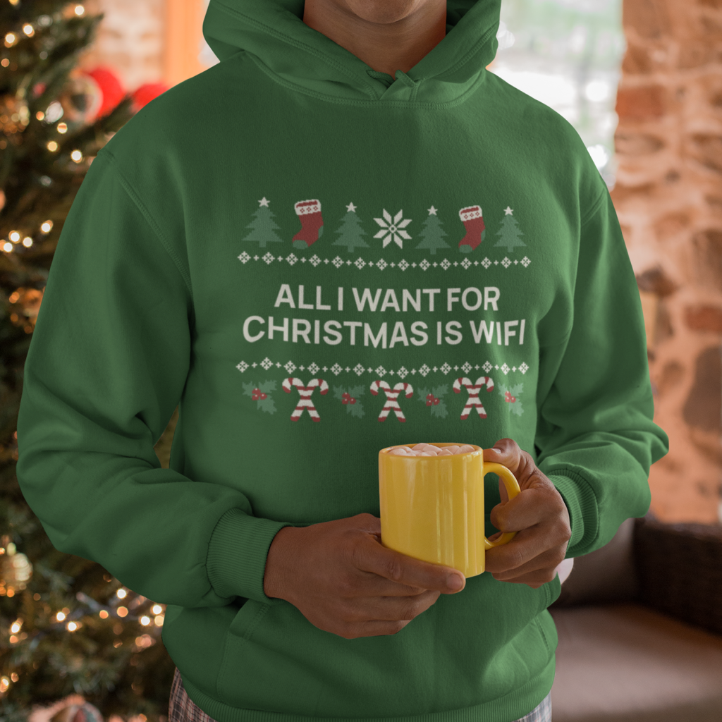 Gen Z Kerst Hoodie Groen All I Want For Christmas Is WiFi