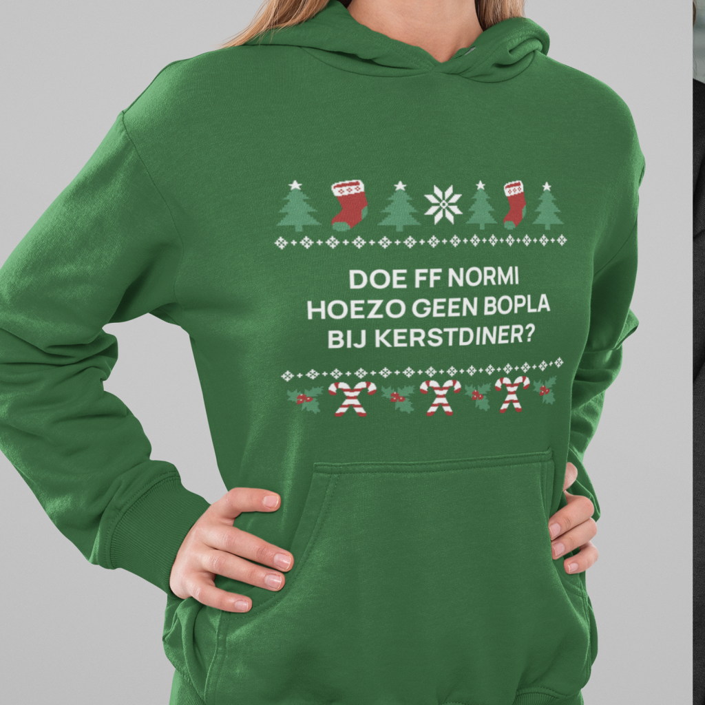 Gen Z Kerst Hoodie Groen Doe Ff Normi Hoezo Geen Bopla Bij Het Kerstdiner?