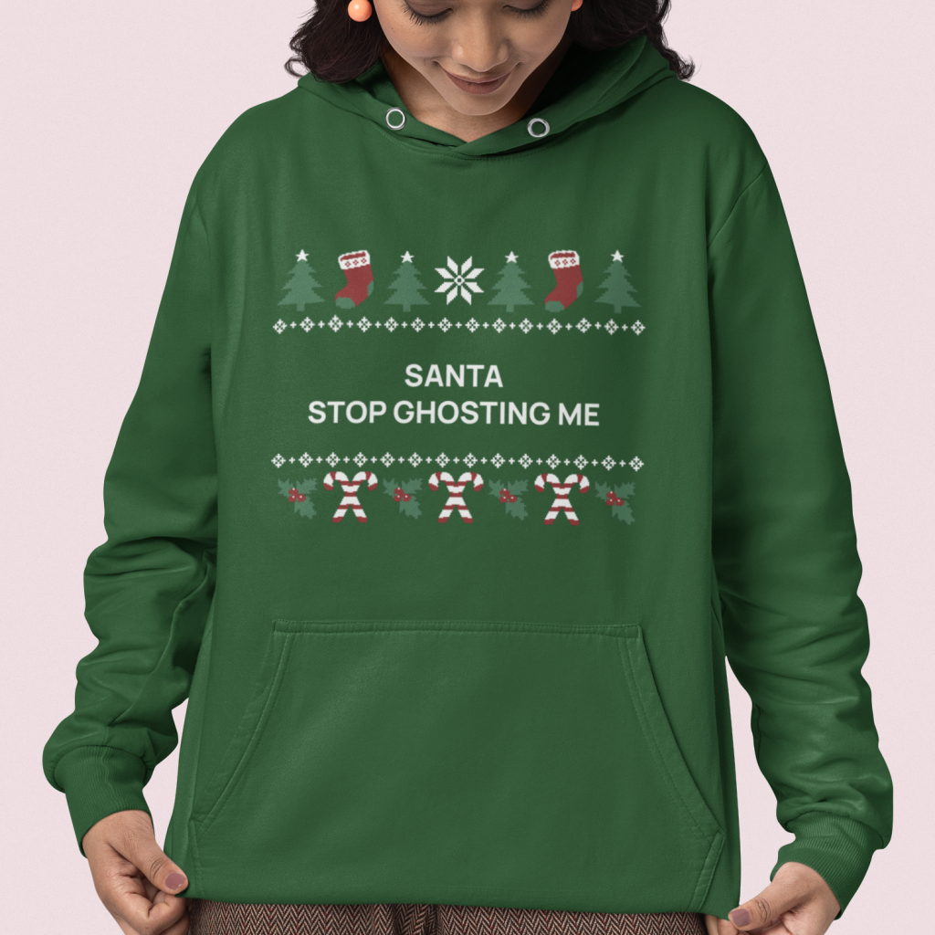 Gen Z Kerst Hoodie Groen Santa Stop Ghosting Me