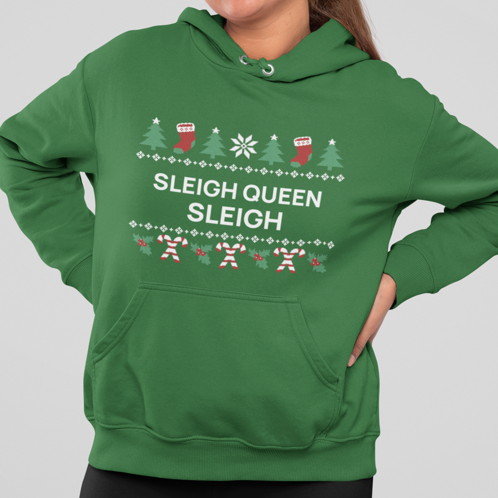 Gen Z Kerst Hoodie Groen Sleigh Queen Sleigh