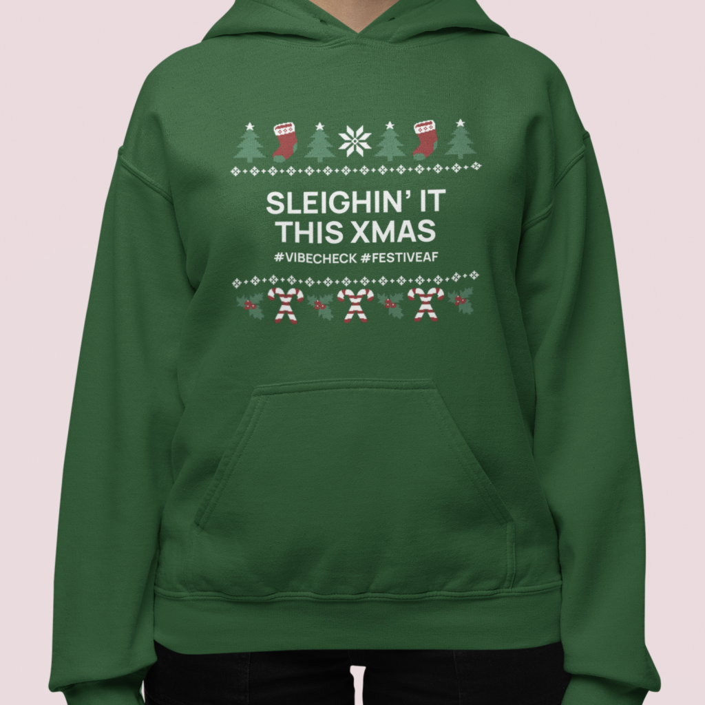 Gen Z Kerst Hoodie Groen Sleighin’ It This Xmas #Vibecheck #FestiveAF