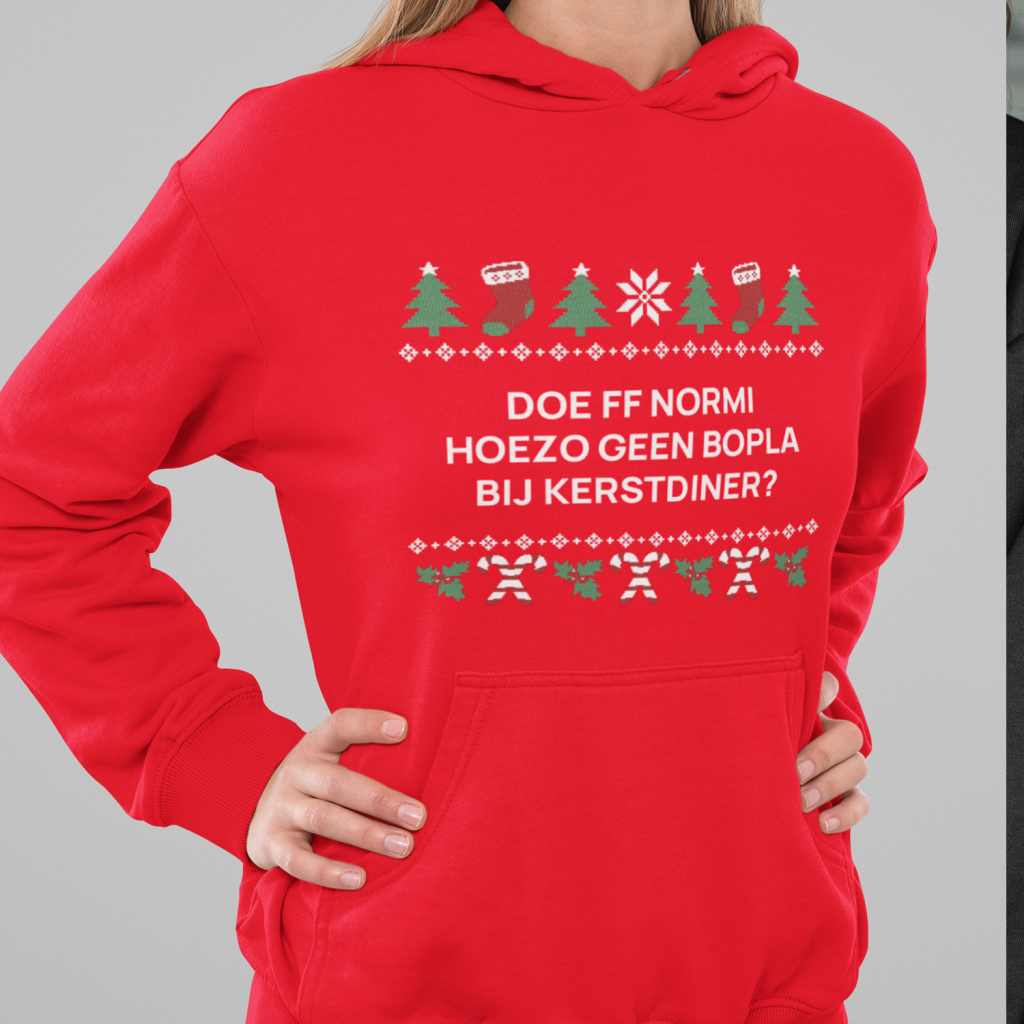 Gen Z Kerst Hoodie Rood Doe Ff Normi Hoezo Geen Bopla Bij Het Kerstdiner?