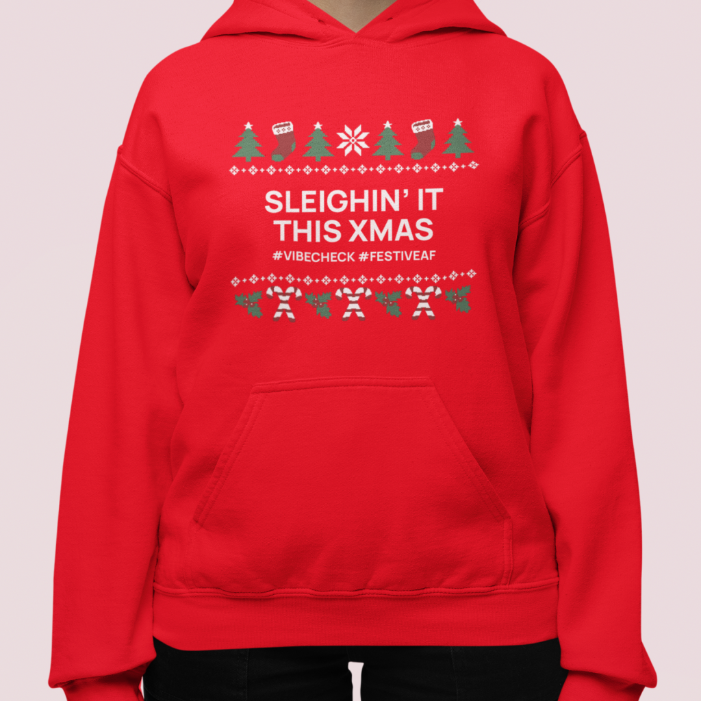 Gen Z Kerst Hoodie Rood Sleighin’ It This Xmas #Vibecheck #FestiveAF