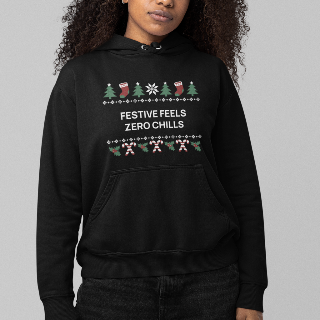 Gen Z Kerst Hoodie Zwart Festive Feels Zero Chills