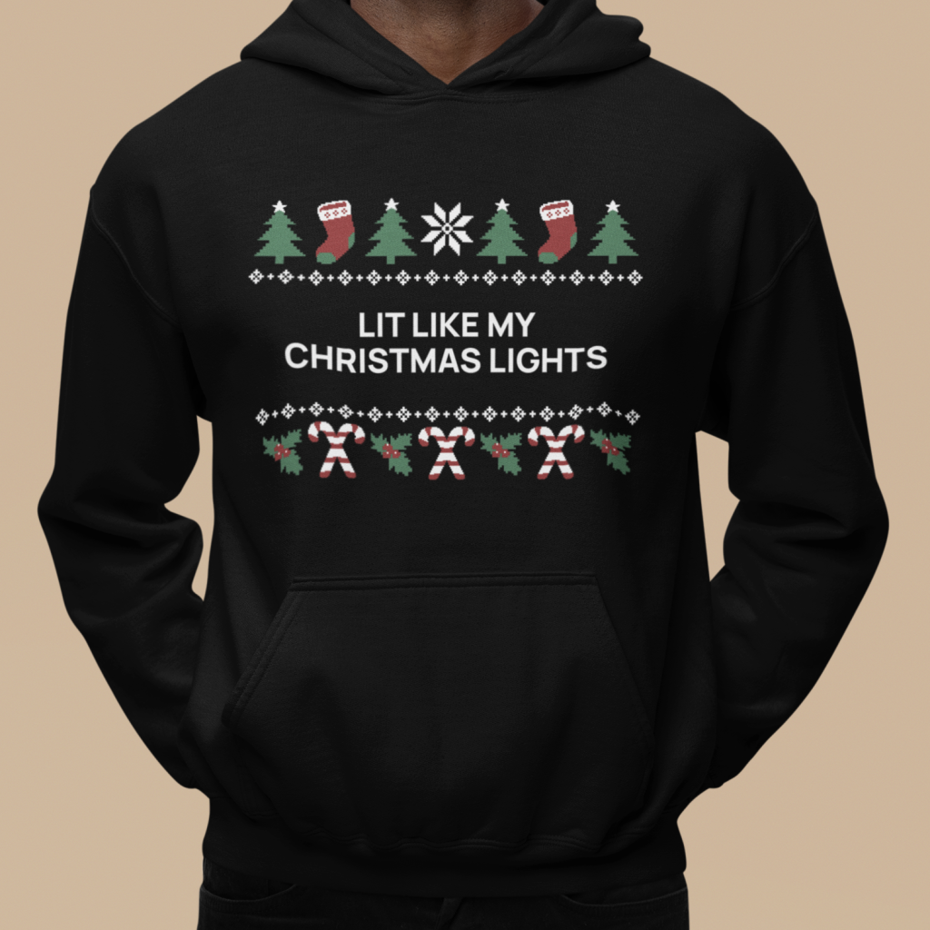 Gen Z Kerst Hoodie Zwart Lit Like My Christmas Lights