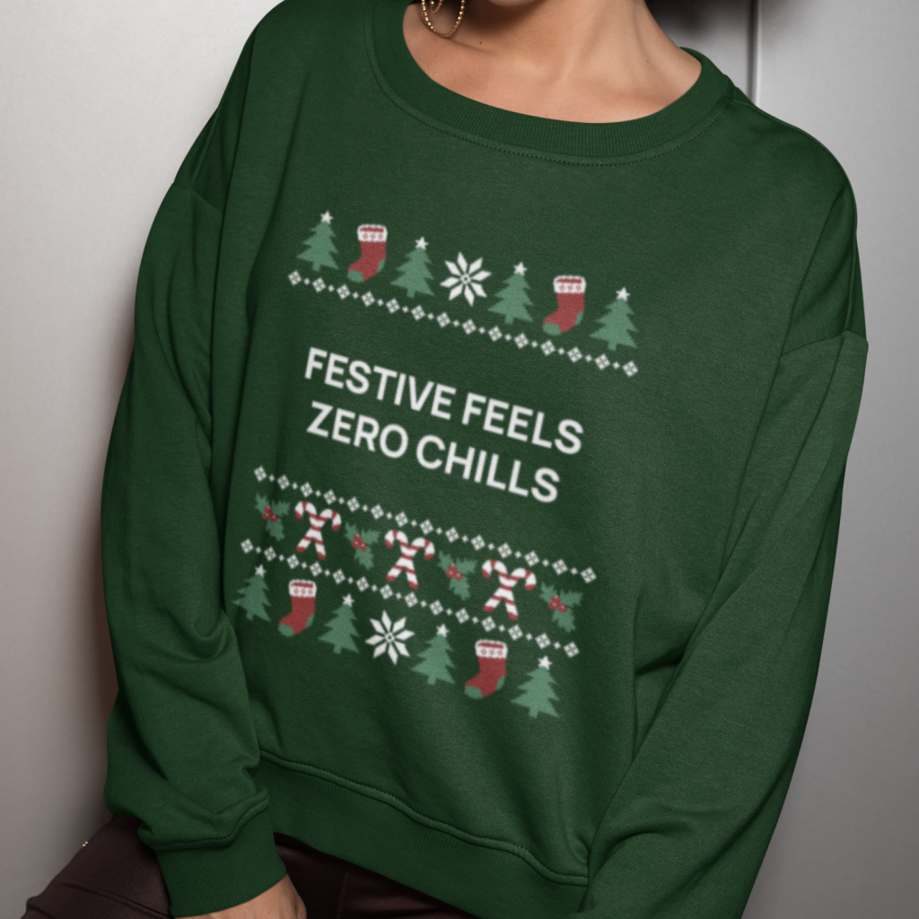 Gen Z Kerst Sweater Groen Festive Feels Zero Chills