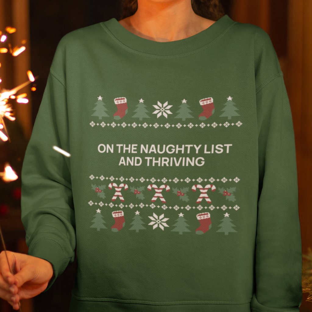 Gen Z Kerst Sweater Groen On The Naughty List And Thriving