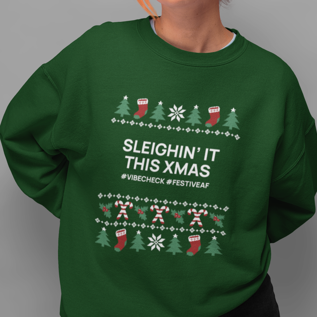 Gen Z Kerst Sweater Groen Sleighin' It This Xmas #Vibecheck #FestiveAF