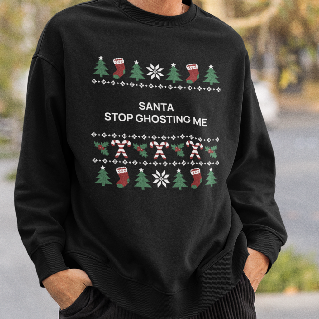 Gen Z Kerst Sweater Zwart Santa Stop Ghosting Me