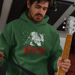 Ben jij een rock- en/of metalfan? Dan is de premium Kerst Hoodie met Sleigher op de borst de ultieme kersttrui voor jou! Deze unieke capuchon sweater wordt al binnen 2 werkdagen thuisbezorgd. Door de uniseks fit is de trui geschikt voor zowel dames als heren. De kerst hoodie is verkrijgbaar in de maten XS t/m 4XL in de kleuren groen en zwart.