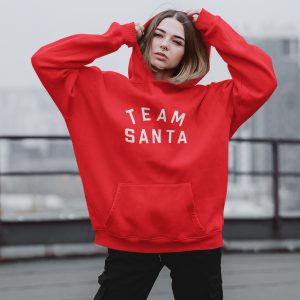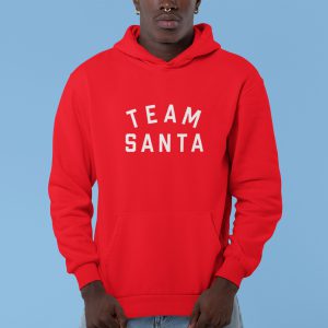 Zoek je een stoere kerst hoodie met een treffende tekst? Dan is deze hoodie met Team Santa erop de perfecte match! De rode capuchon sweater voelt comfortabel aan en heeft een uniseks pasvorm. Het lettertype is niet extreem zacht, zoet of kerstig te noemen. Daarom kom je er stijlvol mee voor de dag op school of je werk. Verkrijgbaar in maat XS t/m 4XL.