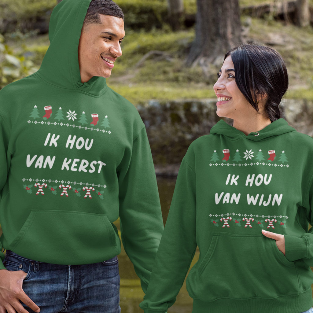Koppel Kerst Hoodies Groen Ik Hou Van Kerst | Ik Hou Van Wijn - Candy Cane