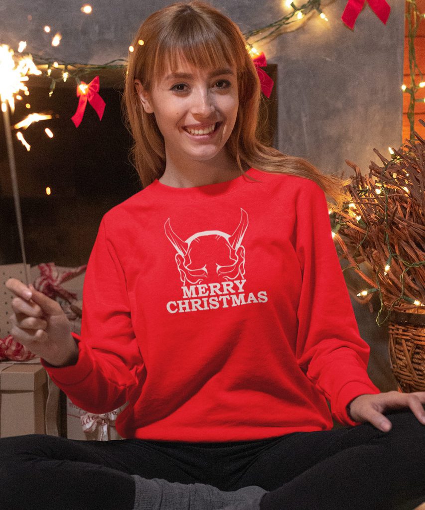 Als je gek bent op kerst en houdt van wel wat zwarte humor, dan is deze rode kerst trui met print Merry Skull echt iets voor jou! Deze comfortabele trui houdt je lekker warm tijdens de koude kerstdagen. Heerlijk om zelf te houden of leuk om weg te geven als kerstcadeau. De sweater heeft een uniseks pasvorm voor dames en heren. Verkrijgbaar in de maten XS - 4XL.