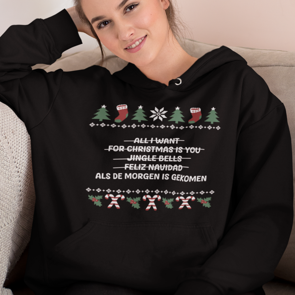 Volendamse Kerst Hoodie Zwart All I Want Is Als De Morgen Is Gekomen