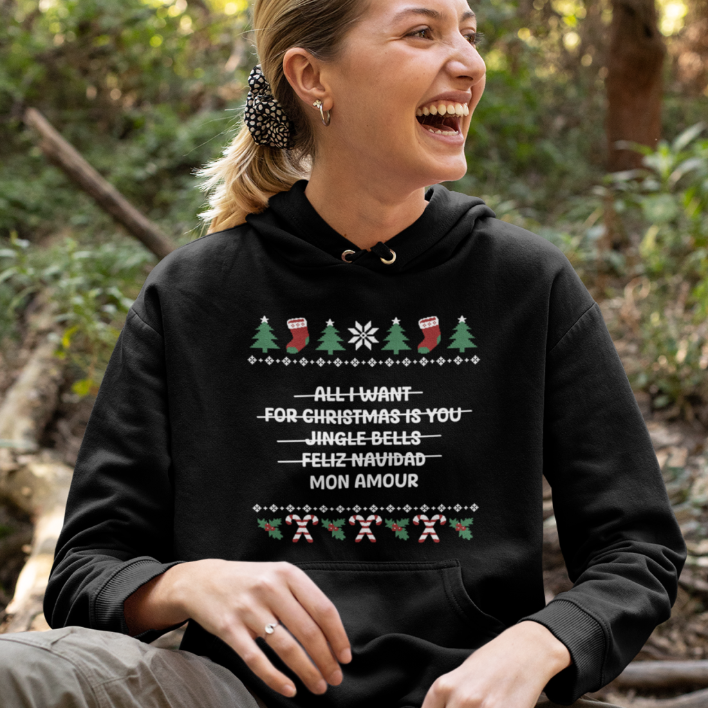 Volendamse Kerst Hoodie Zwart All I Want Is Mon Amour