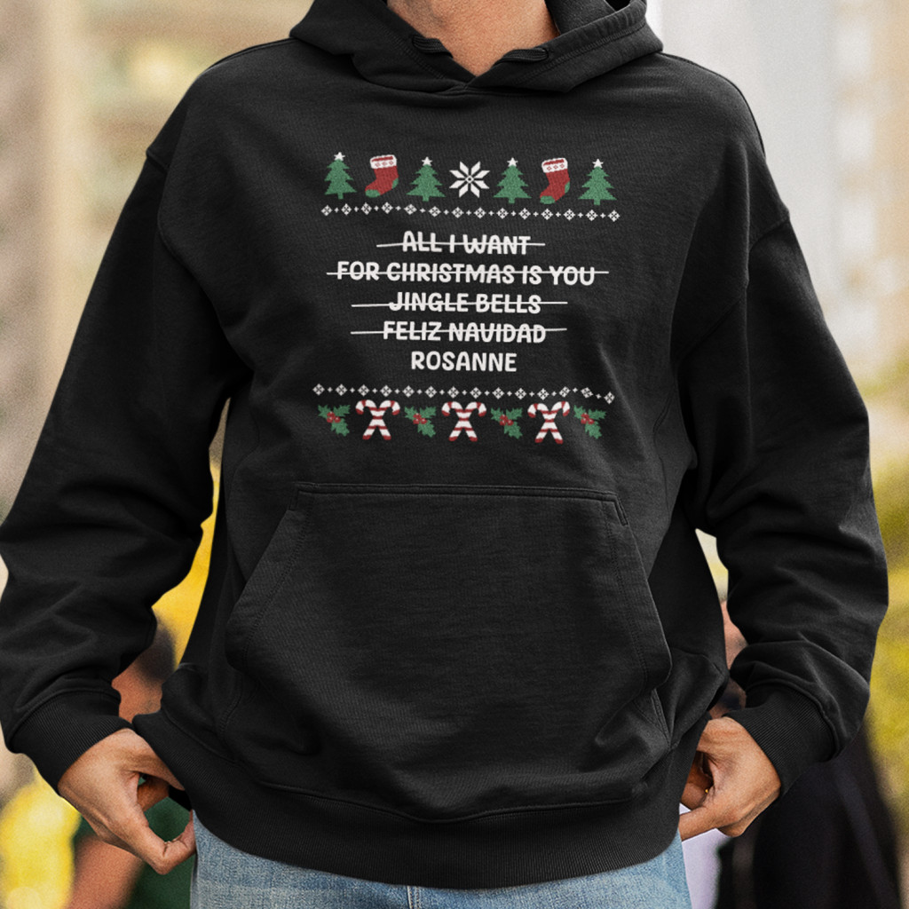 Volendamse Kerst Hoodie Zwart All I Want Is Rosanne