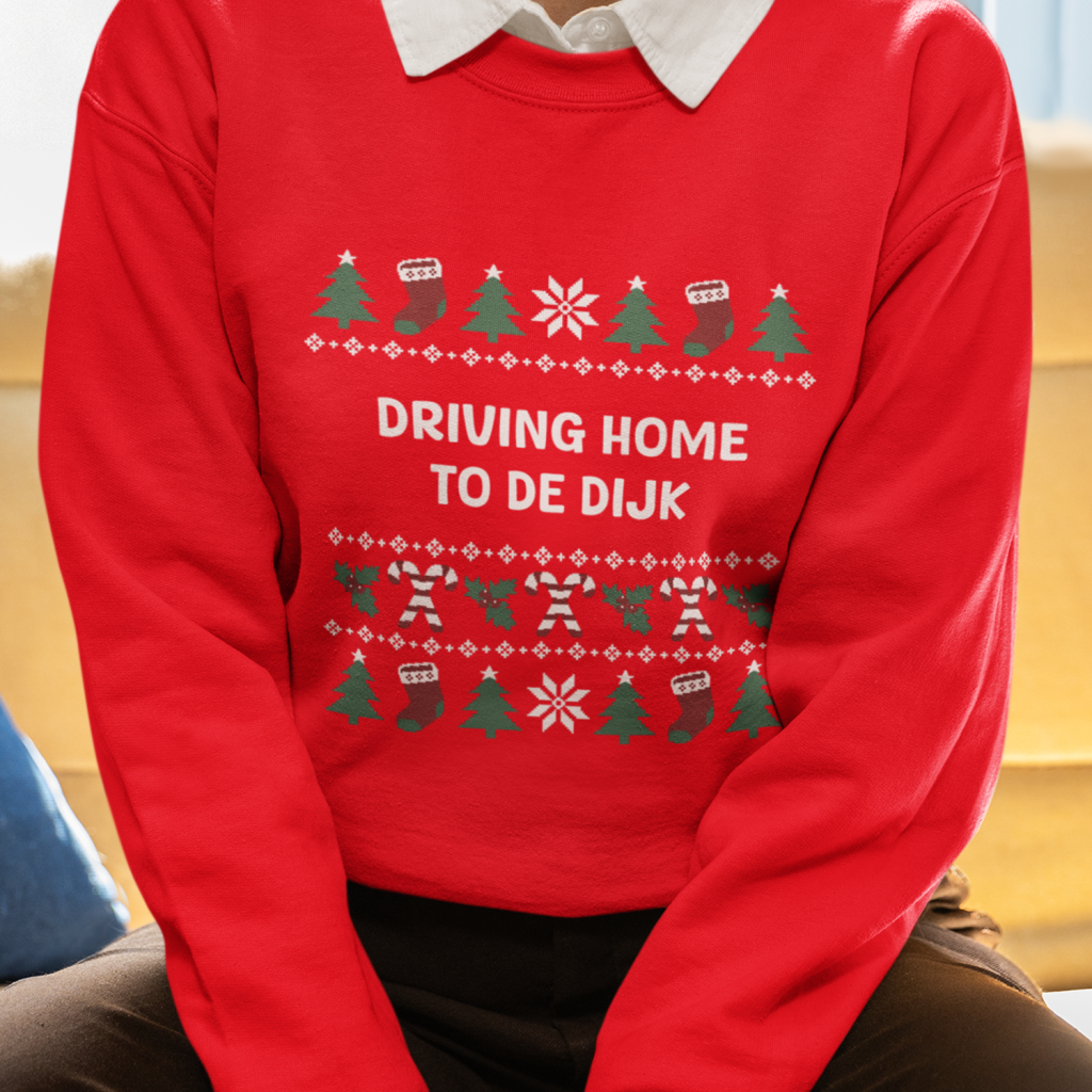 Volendamse Kerst Sweater Rood Driving Home To De Dijk