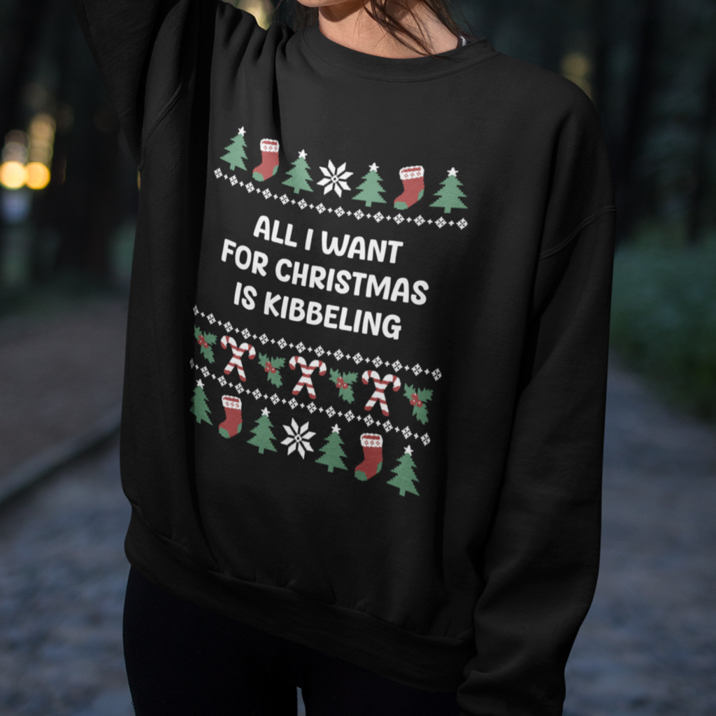 Volendamse Kerst Sweater Zwart All I Want For Christmas Is Kibbeling
