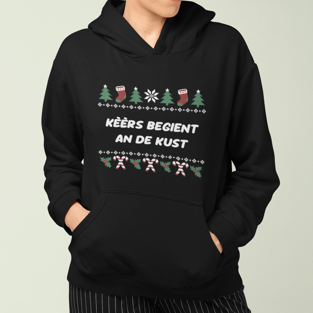 Zeeuwse Kerst Hoodie Zwart Kèèrs Begient an de Kust