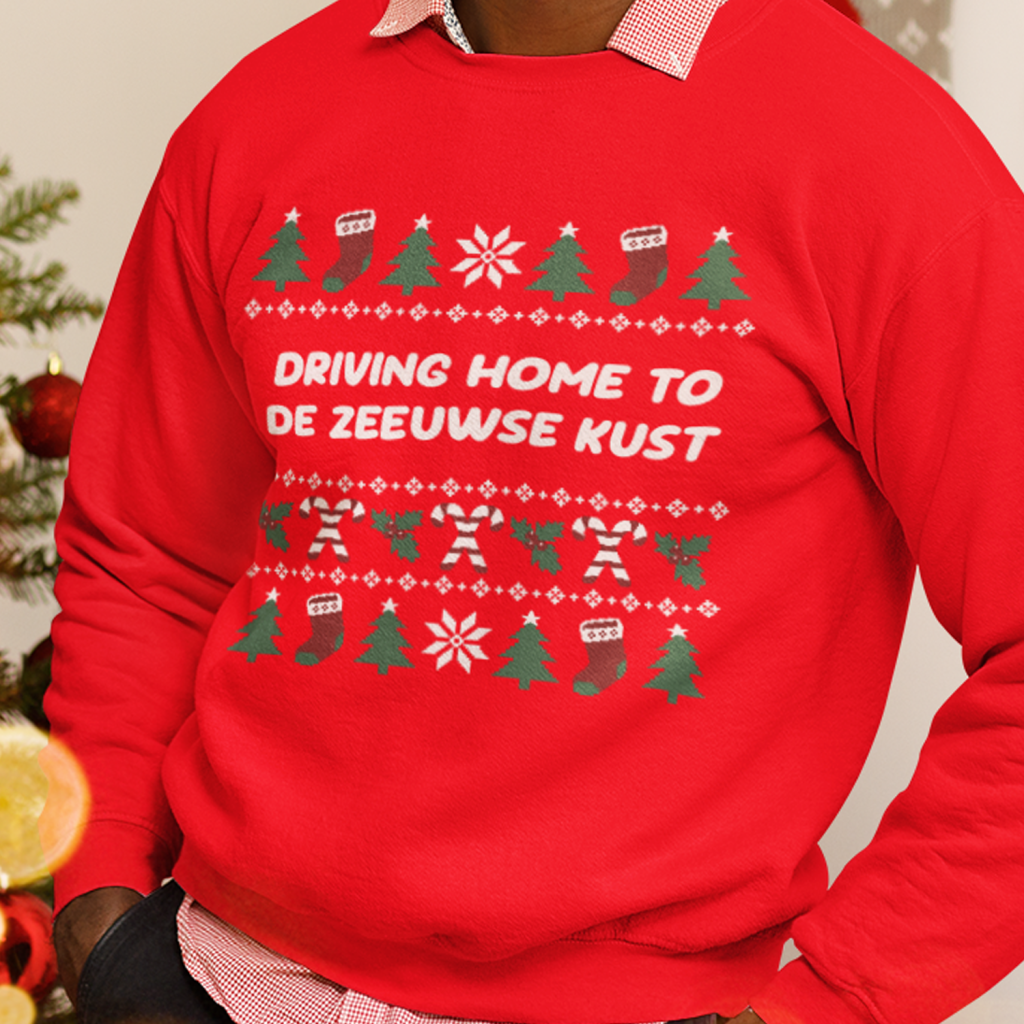 Zeeuwse Kerst Sweater Rood Driving Home to de Zeeuwse Kust