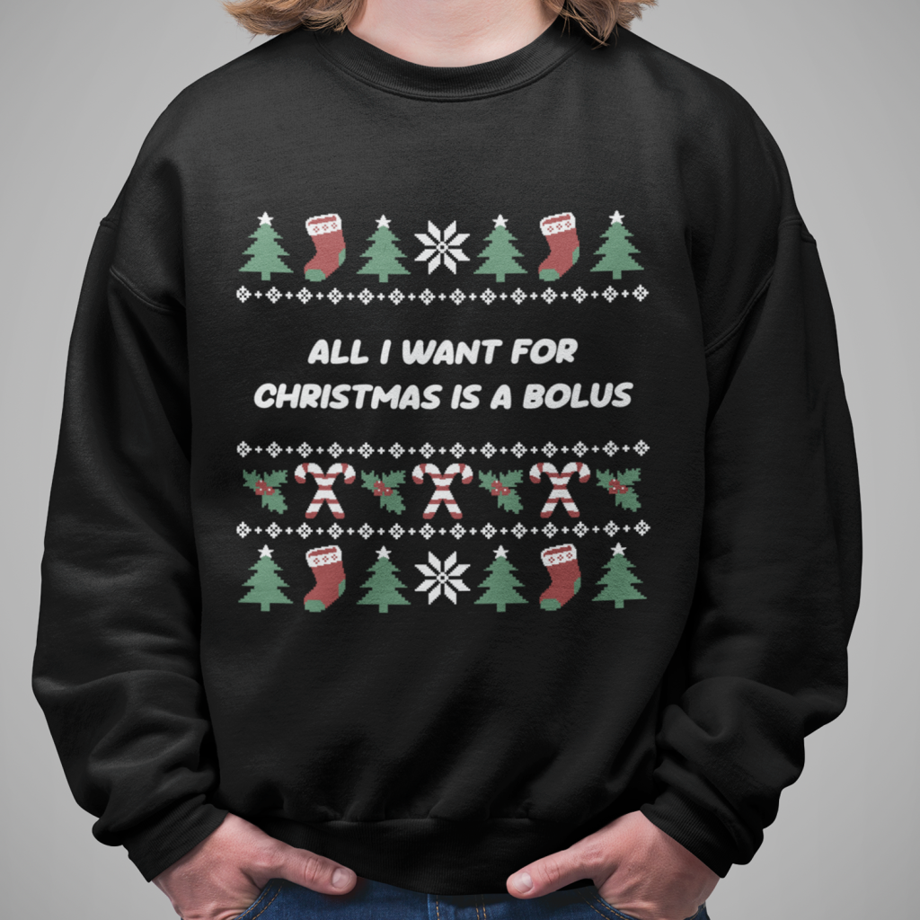 Zeeuwse Kerst Sweater Zwart All I Want For Christmas is a Bolus