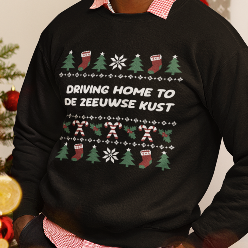 Zeeuwse Kerst Sweater Zwart Driving Home to de Zeeuwse Kust