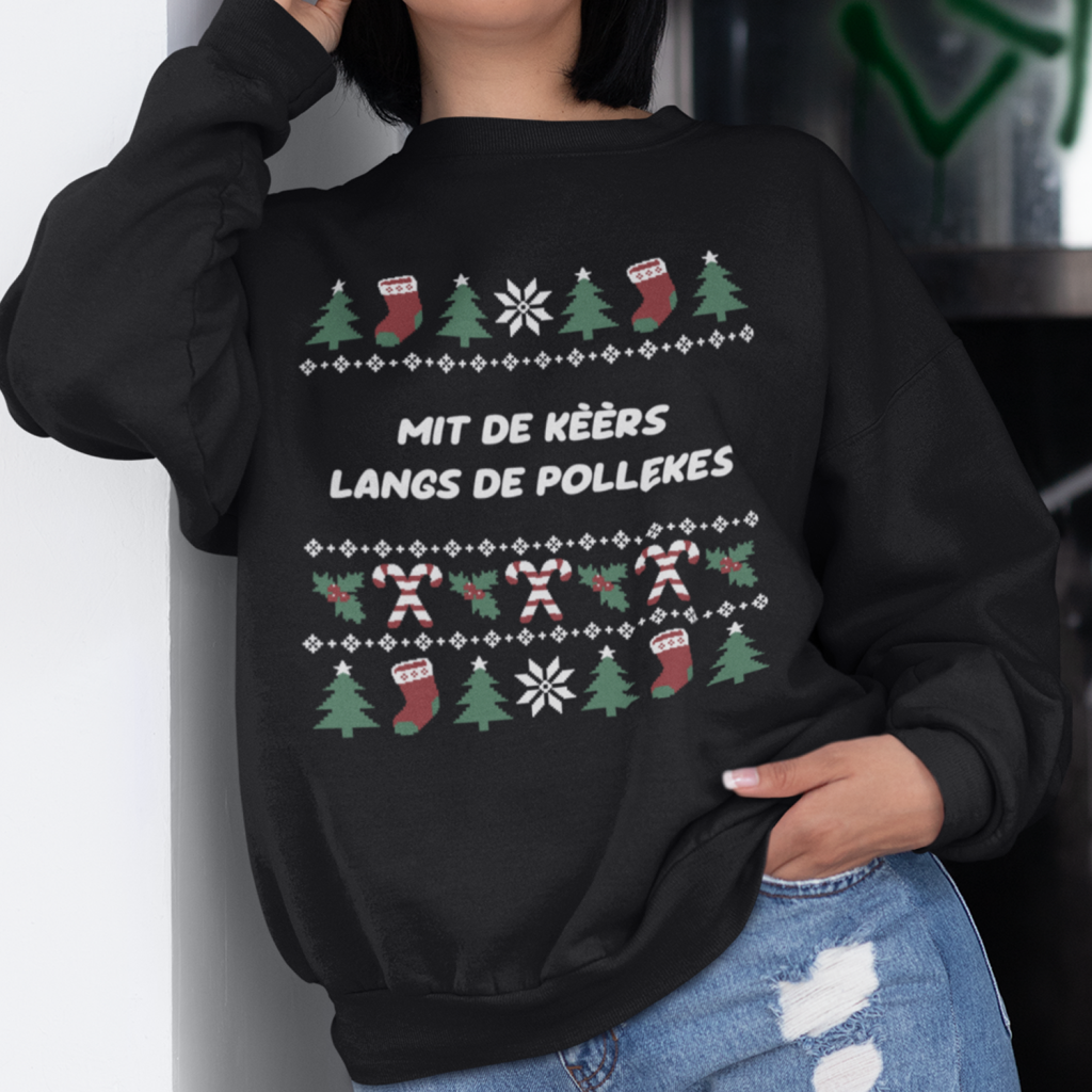 Zeeuwse Kerst Sweater Zwart Mit de Kèèrs Langs de Pollekes