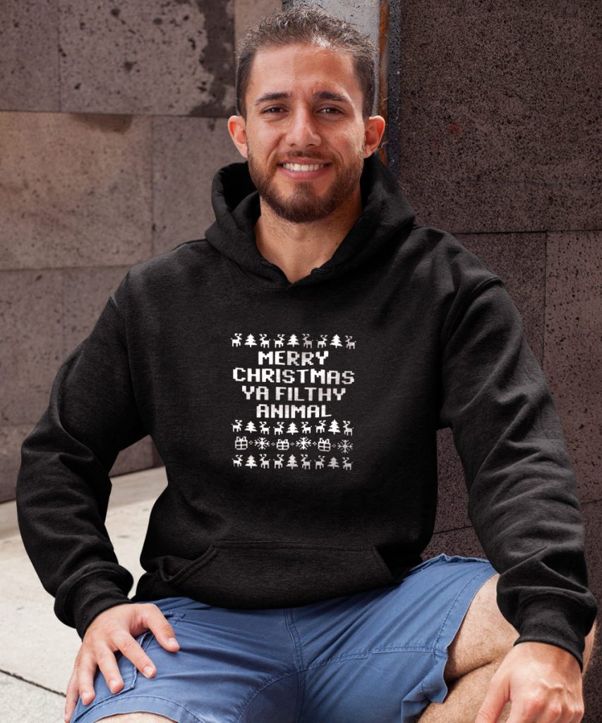 Deze zwarte Kerst Hoodie Filthy Animal is ideaal voor iedereen die net even iets anders wil dragen! Door de gewaagde borstopdruk en het zwarte materiaal maak je een blijvende indruk met Kerst. Als je niet van felle kleuren houdt, dan is dit de perfecte kerst hoodie voor jou. Verkrijgbaar in de maten XS t/m 5XL, geschikt voor dames en heren.